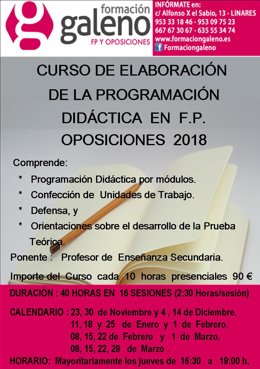 Este curso comprende la Elaboración de la Programación Didactica para los profesores
